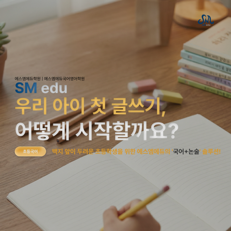 안녕하세요. 에스엠에듀학원입니다. ☺️ 많은 학부모님들께서 우리 학생들의 글쓰기 교육을 언제, 어떻게 시작해야 할지 고민이 많으실 텐데요. 백지 앞에만 서면 연필 쥐기를 주저하는 학생들을 볼 때마다, 어떻게 하면 글쓰기에 대한 부담을 덜어줄 수 있을지 걱정이 앞서실 겁니다. 그래서 오늘은 에스엠에듀학원에서 진행하는 초등 해법 논술과 연계된 초등 국어 수업 현장을 생생하게 전해드리고자 합니다. 체계적인 커리큘럼을 바탕으로 학생들이 어떻게 글쓰기와 친해지는지 함께 살펴보실까요? 처음 글쓰기를 접하는 시기에는 '완벽하고 화려한 문장'을 쓰는 것보다 '내 생각을 스스럼없이 꺼내는 연습'이 훨....... <img src="https://blogthumb.pstatic.net/MjAyNjA0MDZfMTcw/MDAxNzc1NDgwNzM4NDI5.vCMkOcwJeS5TBWFhaUROdlUQQ9rdsWWOc0iE1TayKxYg._bHxaxKPDT9HSvyGGZid0FhMaXzw-TPIUstM57i_qdcg.PNG/202604061.png?type=s3" />