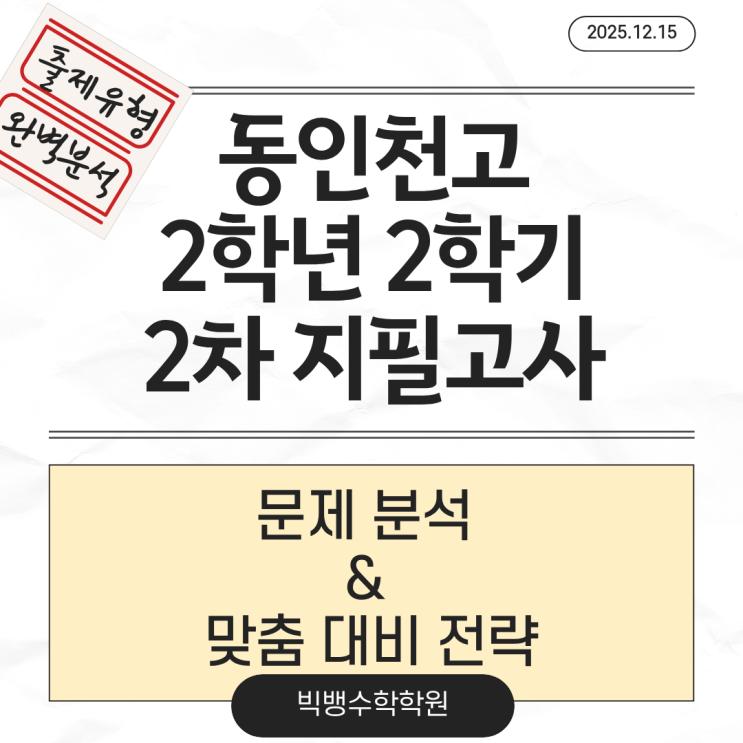 [동인천고 전문_빅뱅수학학원] 동인천고 2025학년도 2-2 기말고사 출제유형 분석 & 맞춤 대비 전략