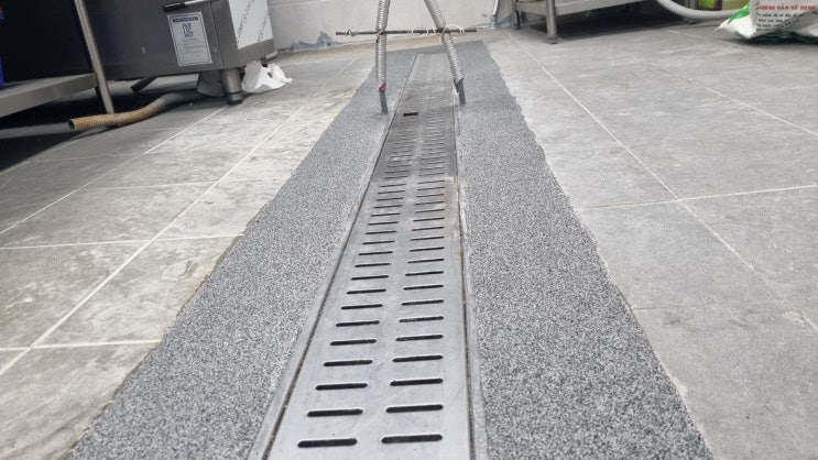 인천 송도 트렌치(트랜치/트랜지) 주변 방수 타일과 벌어져서 식당 주방 바닥 누수