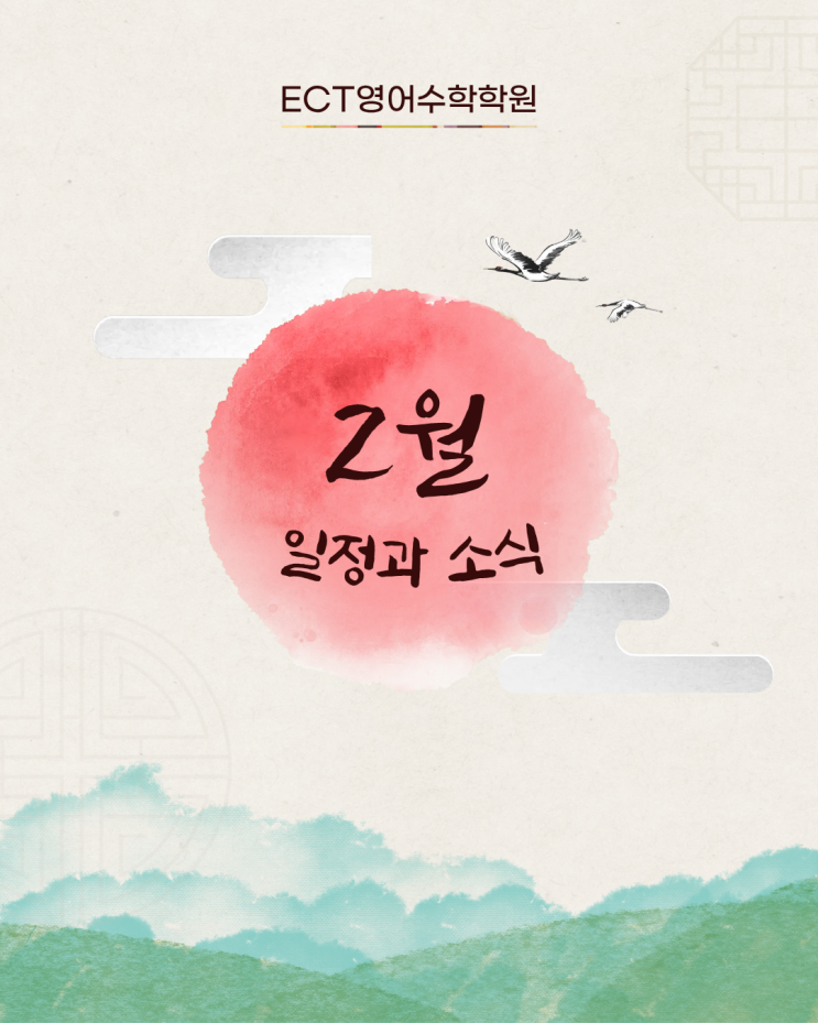 안녕하세요! ECT영어수학학원입니다. 26년이 시작된 지 얼마 되지 않은 것 같은데, 어느덧 1월이 지나갔습니다. 방학 기간에는 더 놀고 싶은 마음이 들기 마련이지만, 그럼에도 매일 학원에 나와 꾸준히 공부하는 우리 학생들을 보면 참 기특하고 대견한 마음이 듭니다. 학습 습관의 끈을 놓지 않고 이어온 이 노력은 새 학기가 시작되면 분명히 빛을 발할 것이라 생각합니다. ☺️ 본격적인 새 학기 시작을 앞두고, 2월에도 학생들의 학습 의욕을 높일 수 있는 다양한 소식들을 준비했습니다. 아래에서 함께 확인해 주세요~ 1. 2026 ECT학원 설 연휴 안내 <ECT영어수학학원 설날 휴무 안내> 2월 16일, 17일, 18일 공휴일에만 휴원하....... <img src="https://blogthumb.pstatic.net/MjAyNjAyMDJfMjYw/MDAxNzcwMDI1NzE2MjM2.MJtL6Krb_h5ZA9zx0W9veTFg4syMxfE59QtbUOHJksUg.zEZL3WI2r4mHtWOkFHUwcf1PiG8AAocZCZGFIWaEYl8g.PNG/%BF%F9_%BC%D2%BD%C4_%B5%F0%C0%DA%C0%CE.png?type=s3" />