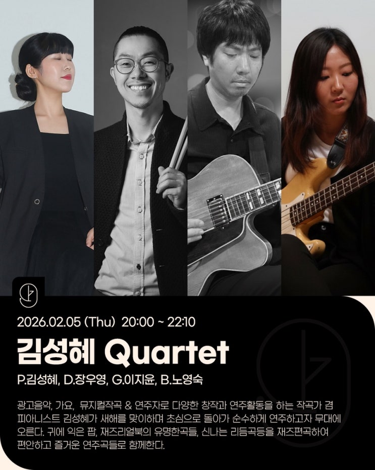 안녕하세요 봄쌤입니다:) 요즘 날씨가 정말 매섭게 춥습니다. 다들 건강 잘 챙기고 계신가요~ 오늘은 저희 학원에서 아이들과 어른들을 사랑으로 지도해 주시는 김성혜 선생님의 재즈 공연 소식을 전합니다! ✨ 재즈, 작곡, 뮤지컬, 여러 장르를 넘나드는 아티스트, 김성혜 선생님 평소 수업 시간에 유쾌하고 재밌게 우리 아이들을 지도해 주시는 김성혜 선생님은 정말 다재다능한 분이십니다 클래식 피아노 전공후 재즈 피아노를 전공하고, 이를 바탕으로 작곡 및 연주 활동은 물론, 광고음악, 뮤지컬 감독까지 맡으셨던 분입니다. 이번 주 목요일, '김성혜 콰르텟'으로 정통 재즈 음악을 들려주신다고 합니다! 단....... <img src="https://blogthumb.pstatic.net/MjAyNjAyMDNfMjk5/MDAxNzcwMTIzNDU3ODk1.8EOgCAb5lBGvuR4N7gr4MMtVlM2-cZQgcla2Y0Pgp8cg.OgTUbh-0yQzgHCXSYJSAbu4Af5HWIQ9V2l3VroEws1Ug.JPEG/IMG%A3%DF8194.JPG?type=s3" />