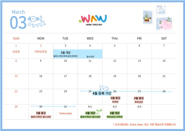 [감일영어]와우잉글리시 어학원 3월 일정 안내