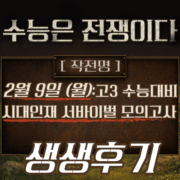 안녕하세요 대치성공스토리학원입니다! 대치동에서부터 하남 미사 지역까지, 특히 하남미사 지역에서는 초창기부터 학원을 운영하며 수능 및 내신 데이터를 방대하게 쌓아온 저희 대치성공스토리에서 고3 학생들을 위해 수능 현장감을 느끼며 모의고사를 볼 수 있도록 특별하게 준비한 [시대인재 서바이벌 모의고사] 그 생생후기를 알려드립니다. 올해 수능을 앞둔 고3을 위한 수능대비 시대인재 서바이벌 모의고사. 대치성공스토리에서는 고3 학생들을 대상으로 [시대인재 서바이벌 모의고사]를 실시하였습니다. 실제 수능 당일과 유사한 환경 및 긴장감에서 실시되는 체험형 모의 수능으로, 현재 고3 학생이라면 대부분 알 만한, 시대인재에서....... <img src="https://blogthumb.pstatic.net/MjAyNjAyMDlfMjYw/MDAxNzcwNjE3OTIxNjg3.nB5yDB52-t0Fy51a86xe6-Em4e0hJfpa8tpLRzgf5csg.sxes8XyGipXn3flwDEEjvTmpeIoBeC9pv78LNnDrQ4og.PNG/%BD%E6%B3%D7%C0%CF_%282%29.png?type=s3" />