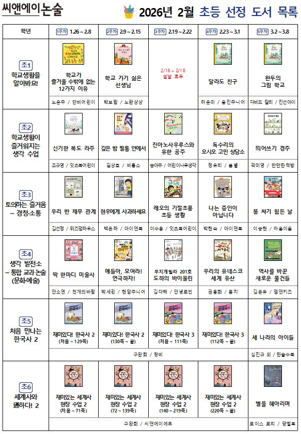 [26년 2월] 동백 C&A 초등 선정도서 및 학습계획서 안내