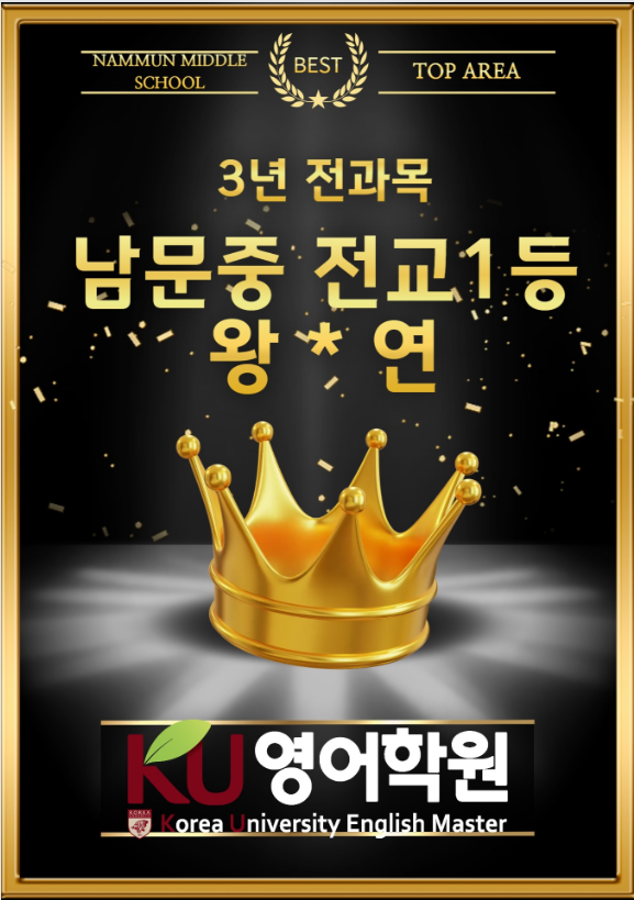[KU영어학원] 남문중 전교1등 왕*연 축하합니다!