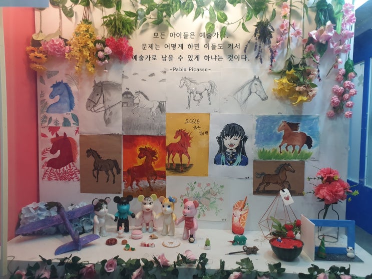 안녕하십니까. 어느새 2026년 새해를 맞이한 지도 한 달이 되어갑니다. 저희 학원에서는 붉은 말의 해를 맞아 말 그리기를 해보았습니다. 소묘로 진행한 학생도 있고, 색연필화와 아크릴화 등 다양한 재료들 중에서 학생들이 직접 하고싶은 재료를 선택했습니다. 또한 뛰어가는 말이나 앞모습 등 말의 포즈도 스스로 선택해서 그리도록 지도해보았습니다. 평소 동물 그리기를 주저하던 학생들도 말의 해를 맞아 말을 그리자고 하니 동기부여가 되는 모습이었습니다. 2026년 새해. 말처럼 역동적이고 건강한 한 해 보내시길 바랍니다. 감사합니다. <img src="https://blogthumb.pstatic.net/MjAyNjAxMjdfMTM4/MDAxNzY5NDkxNTM3MDc5.OBzN5_U56L4x5asrxF9yAuzNb9RQQuyyFYM7lPyreOwg.WVVIHHQjvgWV015lkYgvjDZ-xMRj5t-82dCj0bfdCNAg.JPEG/KakaoTalk_20260123_182501979.jpg?type=s3" />