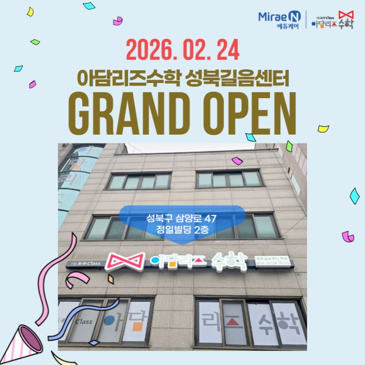 아담리즈수학 성북길음센터 GRAND OPEN