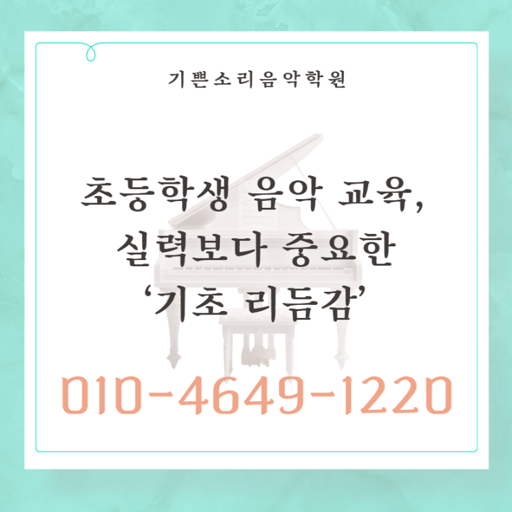 안녕하세요. 중앙초음악학원 기쁜소리음악학원입니다. 초등학생 음악 교육을 시작할 때 많은 부모님들이 가장 먼저 떠올리는 것은 “우리 아이가 곡을 잘 연주할 수 있을까?”라는 질문입니다. 하지만 실제 음악 학습의 기초는 눈에 보이는 연주 실력보다 훨씬 앞선 곳에 있습니다. 바로 기초 리듬감입니다. 리듬감은 음악의 뼈대와도 같습니다. 아무리 손가락이 빠르고 악보를 잘 읽어도, 박자와 리듬이 흔들리면 음악은 자연스럽게 이어지기 어렵습니다. 초등 시기는 이 리듬감을 몸으로 익히기에 가장 좋은 시기입니다. 이때 형성된 리듬 감각은 이후 악기 실력, 합주 능력, 음악 이해력까지 전반적인 음악 성장에 큰 영향을 줍니다. 기초 리....... <img src="https://blogthumb.pstatic.net/MjAyNjAyMDZfMTU2/MDAxNzcwMzU2NDk3ODAy.8z-UUcY8gpntCfPOFZGeuXfc8fdWdlMFW6cSD0z3uVMg.Wl1WMJ6U2L6Jyz51WIavMhM-Jkhzu9oyKZXSdgl6u9Ig.PNG/image.png?type=s3" />