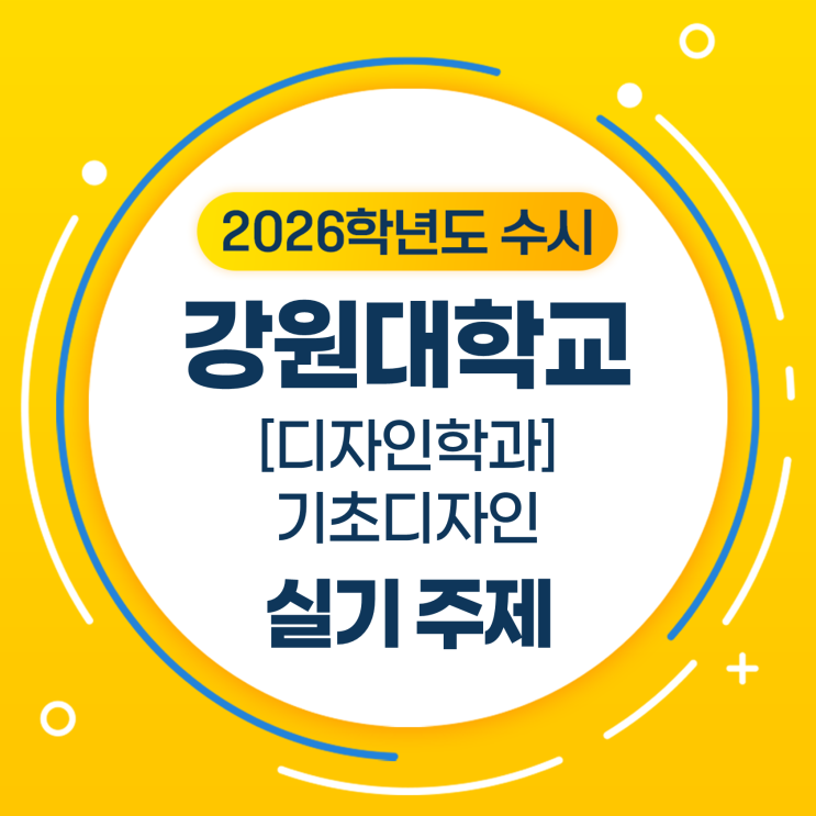 2026학년도 강원대학교 디자인학과 기초디자인 수시 실기고사 주제 안녕하세요! 홍대 창조의아침 미술학원입니다. 부쩍 추워진 날씨! 그 속에서도 자신의 꿈을 향해 나아가는 모든 수험생 여러분을 진심으로 응원합니다. 이번에는 지난 11월 23일 일요일에 진행된 강원대학교 디자인학과의 기초디자인 주제를 공유하고자 합니다. 올해에는 과연 어떤 주제가 출제되었을까요? 홍대 창조의아침과 함께 알아보도록 하겠습니다 2026학년도 수시 주제 강원대학교 디자인학과-기초디자인 제시물: 스테이플러, 지우개, 형광펜 주제어: 분해 홍대창조의아침 미술학원 본원 상담을 원하신다면, ***네이버 예약을 통해 간편하게 원하시는 시간대에 예약....... <img src="https://blogthumb.pstatic.net/MjAyNTEyMDRfMjg3/MDAxNzY0ODE4NzQwNDA3.YQxtvCQobAqi_lHTrARlxk7JFbcEB8OLy0v7_5EEvDYg.wGSAEaG2d5JiaWNwv9qoxAGc0mtaMTfo6ktxaNGtd60g.PNG/%BD%BD%B6%F3%C0%CC%B5%E51.PNG?type=s3" />
