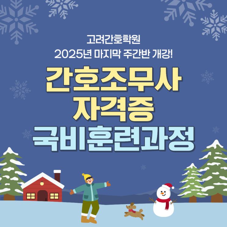 안녕하세요, 고려간호학원입니다! 오늘은 2025년 마지막 개강 과정인 간호조무사 자격증 취득 과정에 대해 소개해 드릴게요! 아직도 고민만 하고 계신 분들, 집! 중! ️ 2025년 3차 주간반 개강일정 ✔ 훈련 기간 : 2025.12.15 ~ 2026.08.31 ✔ 이론(740시간) : 월~금(주 5일), 9:30~18:00 ✔ 실습(780시간) : 월~토(주 6일), 8:50~17:10 직장 다니면서는 자격증 취득할 수 없나요?? 고려간호학원에서는 가능합니다! 직장인을 위한 야간반이 궁금하시다면 아래 포스팅을 참고해 주세요 지난 2025년 하반기 간호조무사 국가자격증 시험에서 모의고사 책에서는 볼 수 없었던 생소한 문제 유형이 나왔다는 평이 있었는데요. 고려간호학....... <img src="https://blogthumb.pstatic.net/MjAyNTExMjVfMTg0/MDAxNzY0MDU1MjM5NzAy.dDbD8Ydg0UuSuPWKlbkYRYFivSDk_0DhfvuWGvx9cBMg.eB8toVwllUS2B0IKk-CtEQ-pd-6YL480nVnzi1xx-hEg.PNG/1.png?type=s3" />