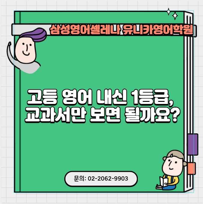 안녕하세요. 신목고영어 전문 삼성영어셀레나 유니카학원입니다. 고등 영어 내신 1등급을 목표로 할 때 많은 학생들이 가장 먼저 하는 생각은 “교과서만 완벽히 외우면 되지 않을까?”입니다. 물론 교과서는 시험의 기본입니다. 본문 암기, 어휘 정리, 문장 해석은 필수 과정입니다. 하지만 현실의 고등 영어 시험은 교과서 ‘그대로’ 나오지 않는 경우가 더 많습니다. 첫째, 변형 문제입니다. 학교 시험은 본문 문장을 그대로 묻기보다 어휘를 바꾸거나, 문장 구조를 뒤집거나, 순서를 재배열하는 방식으로 출제됩니다. 즉, 단순 암기가 아니라 문장 구조를 정확히 이해하고 있어야 대응이 가능합니다. 둘째, 서술형 대비입니다. 최근 고등 내....... <img src="https://blogthumb.pstatic.net/MjAyNjAzMDRfODUg/MDAxNzcyNTkyMjExNzEx.CO_CTYWNWlyTL2V3JZxCgv8n6fDwbcgD8c48TckngCwg.Z6sGMWZhbd0px1FDiikesafSuNgAGB4RZYP2mvidrgQg.PNG/image.png?type=s3" />