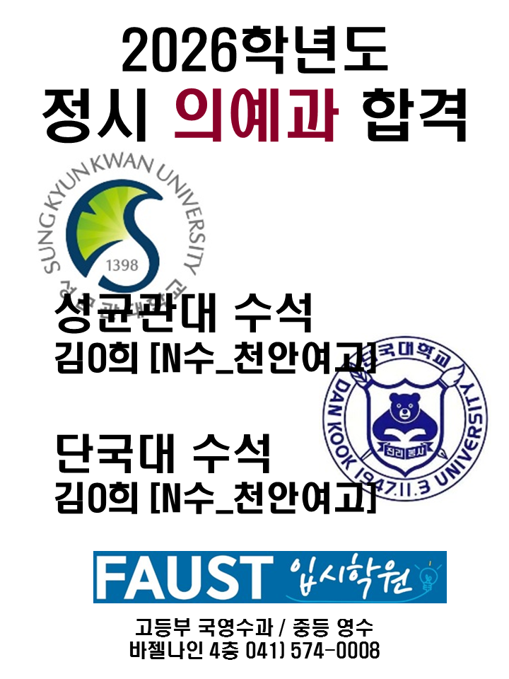 FAUST입시학원 2026학년도 정시 의예과 합격!!!