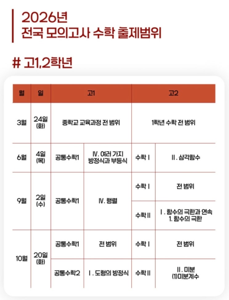 2026년 모의고사일정