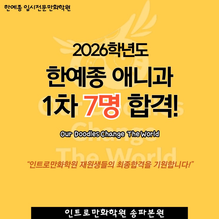 [인트로만화학원 송파본원] 2026학년도 한예종 애니과 1차 7명 합격!!