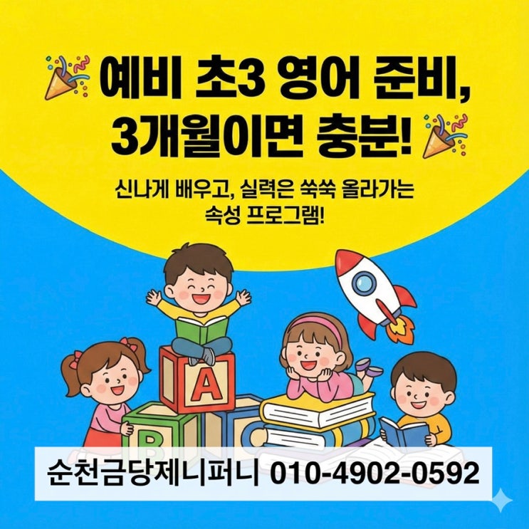 [초등영어]예비초3, 방학을 알차게! 파닉스3개월 속성+ 교과대비까지/순천팔마초동명초대석초환영![순천금당제니퍼니영어학원]