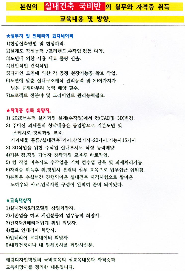 26년 실내건축 국비반 교육방향