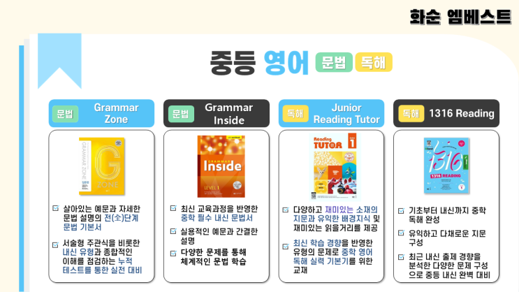 [화순 영어학원 엠베스트] 중등 영어 교재 구성 (기본반)