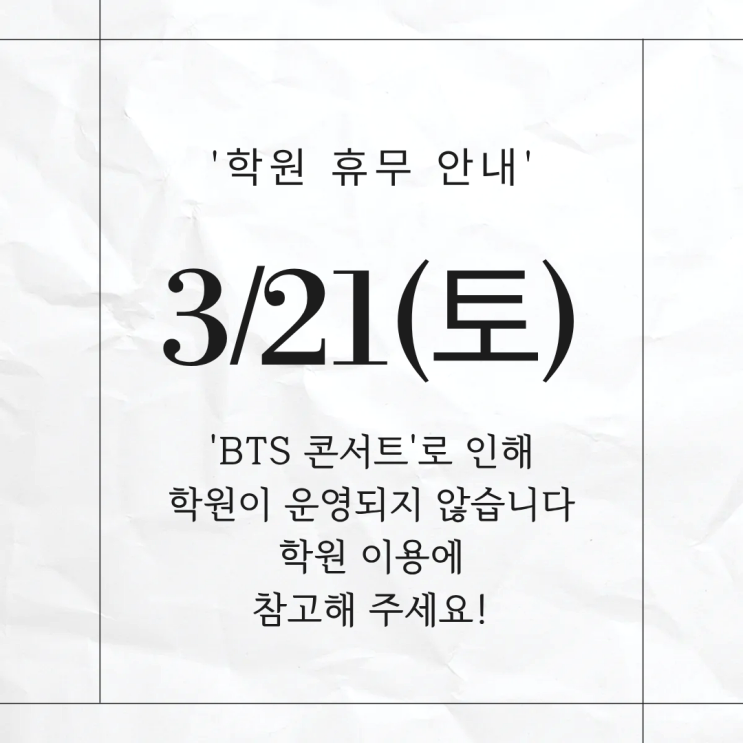 <학원 휴무> 3월 21일(토) 학원 휴무