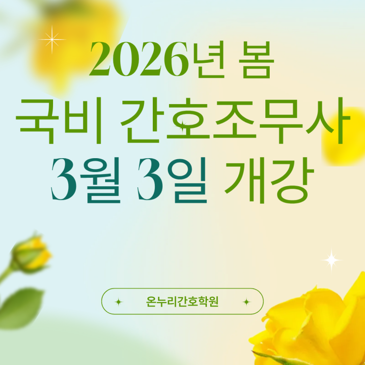 안녕하세요. 이젠 ON! 하세요. 은평구 국비 간호조무사학원 온누리간호학원 입니다. 2026년의 새해가 밝았습니디. 2026년 3월, 통합돌봄이 본격적으로 시작됩니다. 초고령 시대 키워드는 '돌봄'이고 그 중심에 간호조무사가 있습니다. 평생직업 국가자격증! 간호조무사에 도전해 보세요! 오늘은 2026년도 상반기 은평구 국비 간호조무사 학원 3월 개강 과정의 훈련 기간 및 훈련시간, 학원 안 가고 쉬는 날... (야호) 등에 대해서 알아볼게요^^ 은평구 온누리간호학원의 2026년 상반기 3월 간호조무사 국비과정 일정이 궁금해요! ✅2026년 3월 3일에 개강해서 2027년 2월 18일 종료되는 과정이에요 간호조무사 국가고시는 매년 3월....... <img src="https://blogthumb.pstatic.net/MjAyNjAxMDNfNSAg/MDAxNzY3MzcwMTk3MDM4.b5hl7I9fW8ztx0ZrDRoWHexLCsKUF_p5J9ylmkiKx3Yg.nQz8uNl2_1gGakMArR5tD7XJsPwumohpsKmBTPrUbR8g.PNG/%C1%A6%B8%F1%C0%BB_%C0%D4%B7%C2%C7%D8%C1%D6%BC%BC%BF%E4..png?type=s3" />