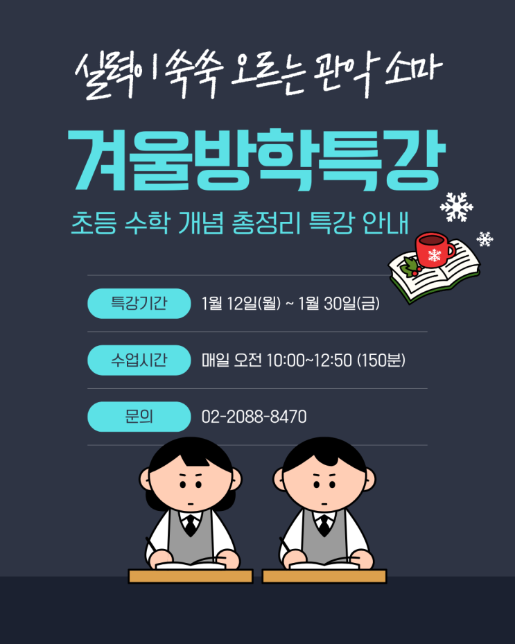 관악 소마와 함께하는 초등 방학 특강, 우리 아이 수학실력은 이번 방학에 결정 됩니다.