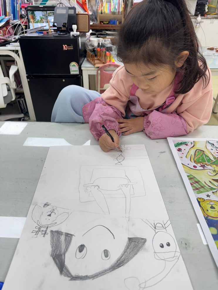 그림이야기 교실의 문을 열면 가장 먼저 들리는 건 조용한 연필 소리, 종이를 스치는 파스텔의 바스락거림, 그리고 무엇보다 아이들만의 단단한 집중입니다. 각자 다른 그림을 그리고, 다른 재료를 만지지만… 아이들의 마음은 한 방향을 향하고 있어요. ‘지금 내가 하고 있는 이 순간에 최선을 다하기.’ 요즘 진지남이 된 지혁이:) 오늘은 리호를 기다린다 조금 늦게왔다 ㅋ 모두들 방귀 이야기에 푹 빠진 너희들 ㅋㅋ 학교에서 몰래 방귀뀌기에 성공했다며 의기양양한 아이들 ㅋㅋ 몰입하는 손끝, 깊어지는 생각 연필을 꼭 쥐고 천천히 선을 그어 내려가는 아이의 모습은 늘 감동입니다. 그 작은 손끝에서 이야기가 태어나고, 색이 입혀지고....... <img src="https://blogthumb.pstatic.net/MjAyNTEyMDNfNyAg/MDAxNzY0NzIxNzkxMTQ5.WdP6iNOrEtf8flophU7nSfFKTCBorngN40Y72wEZrbsg.QK9S2WuqUW3tnQhsX2CIg8aIGVVRMtD7AlqLRSnq9Lsg.JPEG/IMG%A3%DF7077.JPG?type=s3" />