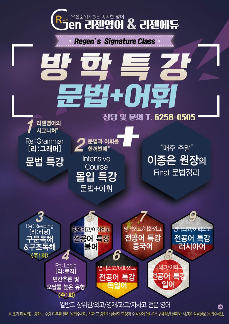 [리젠영어] 26' 겨울방학 특강 커리큘럼 안내