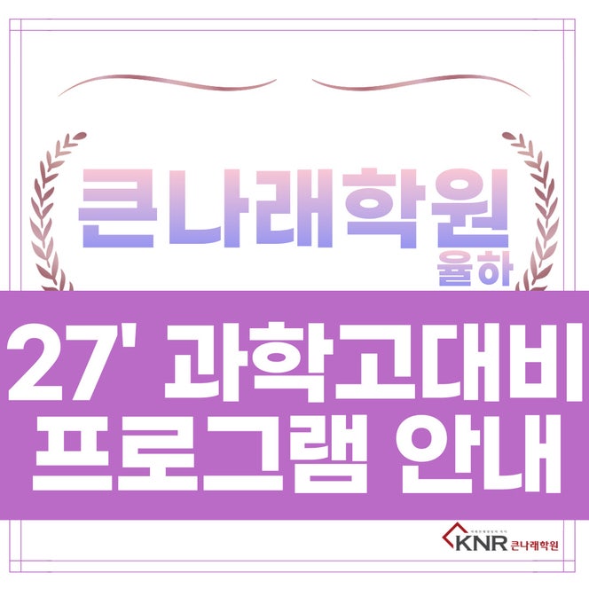 안녕하세요. 미래 인재양성의 리더 큰나래학원 김해 율하점 입니다. 2026년 1월 5월(월) 개강하는 27학년도 과학고등학교 대비반 프로그램 안내드립니다. 프로그램 시간표는 아래 사진 참조 부탁드리며, 자세한 문의사항은 율하점으로 연락바랍니다. 율하점KNR큰나래학원 ☎ 055-724-4244 ※ 과학고대비반 프로그램은 입학테스트가 필수입니다. 입학테스트는 학생들이 그동안 얼마나 학습하였는가를 확인하는 시험이기도 하지만, 앞으로 어느 정도의 수준을 학습하는 것이 적합한지 평가하는 시험이기도 합니다. [ 과학고 입시를 위한 단계별 학습 방향 ] Step 1 기초+응용(1~6월) ▶ Step 2 고급(7~8월) ▶ Step 3 실전(8~10월) ▶ Step 4 최종....... <img src="https://blogthumb.pstatic.net/MjAyNTEyMDhfNDIg/MDAxNzY1MTkyNTUzMjA2.9lU7As0j_1Qsee3lXRSWSLaGY1r3YezxitVLd-aE6rUg.cJCueVGc4CHabboEo95mRDXFG_BzMrjrGEIVQ1aAfJwg.JPEG/%C0%B2%C7%CF-%BA%ED%B7%CE%B1%D7-002.jpg?type=s3" />