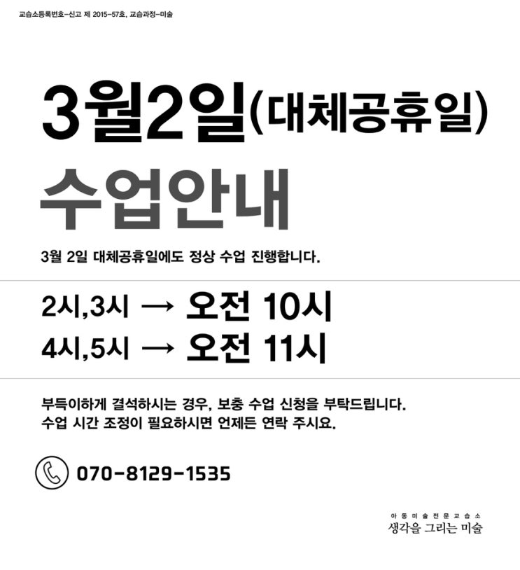 [학원 휴가 안내] 2/24~3/1 휴가|3/9 개강 · 3/5 조기등록 마감