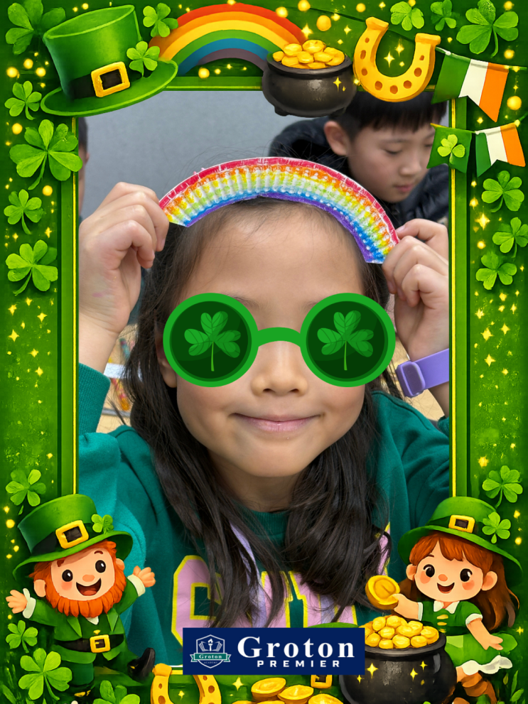 안녕하세요, 그로튼 프리미어입니다! 3월 16일(월)과 3월 17일(화), Groton Premier에서는 Saint Patrick’s Day 이벤트가 진행되었습니다. 이번 Saint Patrick’s Day, Groton Premier에서는 Gold Coin 시스템을 중심으로 이벤트가 진행되었습니다. 학생들은 리딩, 미션 수행, 그리고 꾸준한 참여를 통해Gold Coin을 하나씩 모아갔습니다. 그리고 총 7개의 Gold Coin을 모으면....!!! Groton Premier의 마스코트, Gromi Bear를 받을 수 있습니다. 이 과정에서 중요한 것은 단순한 보상이 아니라, 학생들이 스스로 목표를 가지고 그 목표를 향해 지속적으로 노력하는 경험입니다. 아이들은 ‘받는 것’보다 ‘이루어가는 과정’을 경험하게....... <img src="https://blogthumb.pstatic.net/MjAyNjAzMjBfMjU1/MDAxNzczOTk2NTE0MDg5.7Abou2ICpr-MhVlf7Nq25ikHfgS1flNZR4q6t-q3eKcg.prE2_2ULG5MMh0mjQLs8RLzdU9iLq6fSMGJVIZ2xkTEg.PNG/1.png?type=s3" />