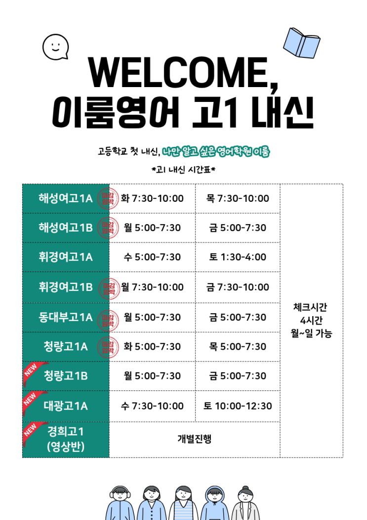 26년 3월개강 ★고1 내신 시간표________________ [이룸영어학원/ 해성여고/휘경여고/청량고/동대부고/대광고/경희고]