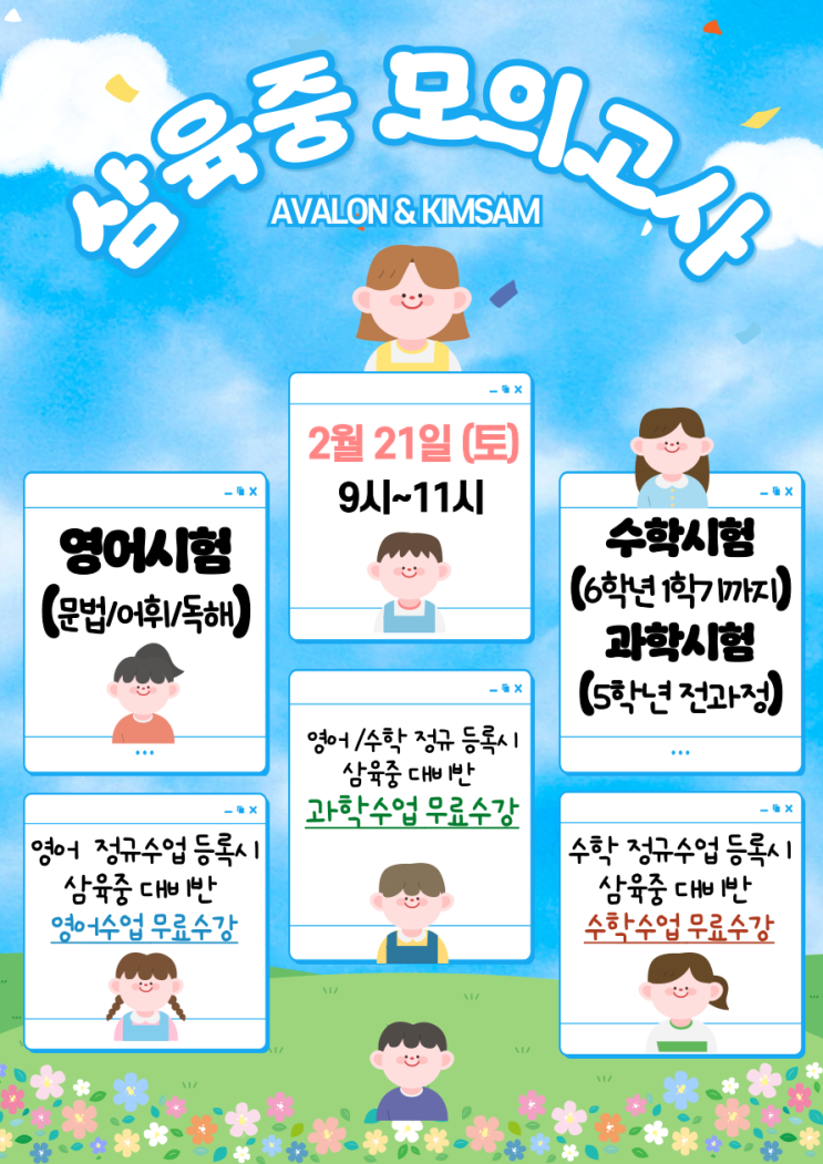 안녕하세요~ 아발론&김샘학원입니다!! 2027학년도 삼육중 입학 대비반 첫 모의고사 입니다~~~ 무료로 진행되는 시험이고 시험 후 결과는 전화로 상담드립니다!! 많은 신청 해주세요^^ ☎ 765-2662 / 766-5552 #원주삼육중 #원주아발론 #원주김샘학원 #원주영어학원 #원주수학학원 #원주과학학원 #영어학원 #수학학원 #원주삼육중대비반 #원주삼육중대비학원 <img src="https://blogthumb.pstatic.net/MjAyNjAyMDRfMjE0/MDAxNzcwMjE0NDkzMTYz.EM99YPhtPooIEfza7l75YxT9tPzMiUtQvw5GNyl2r1Ug.U8vz4ay3WdgI5Wg_dOHQoV_ipUNaGSjBHwASwsvA-10g.PNG/%C1%A6%B8%F1%C0%BB-%C0%D4%B7%C2%C7%D8%C1%D6%BC%BC%BF%E4_-001_%281%29.png?type=s3" />