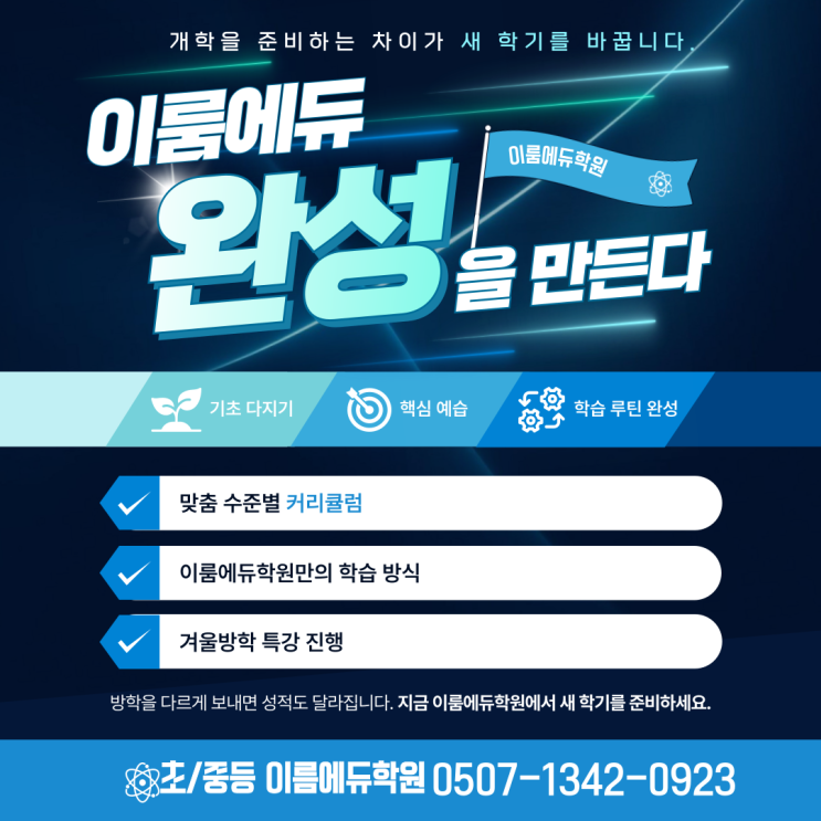 새 학기 성적이 오르는 아이들을 보면 공통점이 하나 있습니다. 미리 문제를 많이 풀어놓은 아이가 아니라 개학을 준비하는 방식이 다른 아이들이라는 점이에요. 단순 예습이 아니라 학습 습관과 태도를 먼저 잡아둔 아이들은 개학 후 수업을 훨씬 편안하게 받아들입니다. 개학 전, 공부의 ‘양’보다 중요한 것 방학 동안 무작정 많이 하는 공부는 오래 가지 않습니다. 오히려 중요한 건 ✔ 매일 공부하는 리듬 ✔ 설명할 수 있는 이해도 ✔ 혼자 생각해보는 힘 이 세 가지가 준비되어 있느냐입니다. 이룸에듀학원은 개학 후 성적이 자연스럽게 이어질 수 있도록 방학 기간 동안 학습 습관부터 차근차근 만들어갑니다. 이룸에듀학원의 수학 학습....... <img src="https://blogthumb.pstatic.net/MjAyNjAyMDlfODMg/MDAxNzcwNjI1MTkyODEw.6dYGPpYZNS4IP2Q8Gvv8A7IW1yEsp93a9jozDUDWvwAg.amzh13wmUoPPRPqEmTEbcVs2Et93yh3cpNdnF0DNWv0g.PNG/%C1%A6%B8%F1%C0%BB-%C0%D4%B7%C2%C7%D8%C1%D6%BC%BC%BF%E4_-016_%284%29.png?type=s3" />
