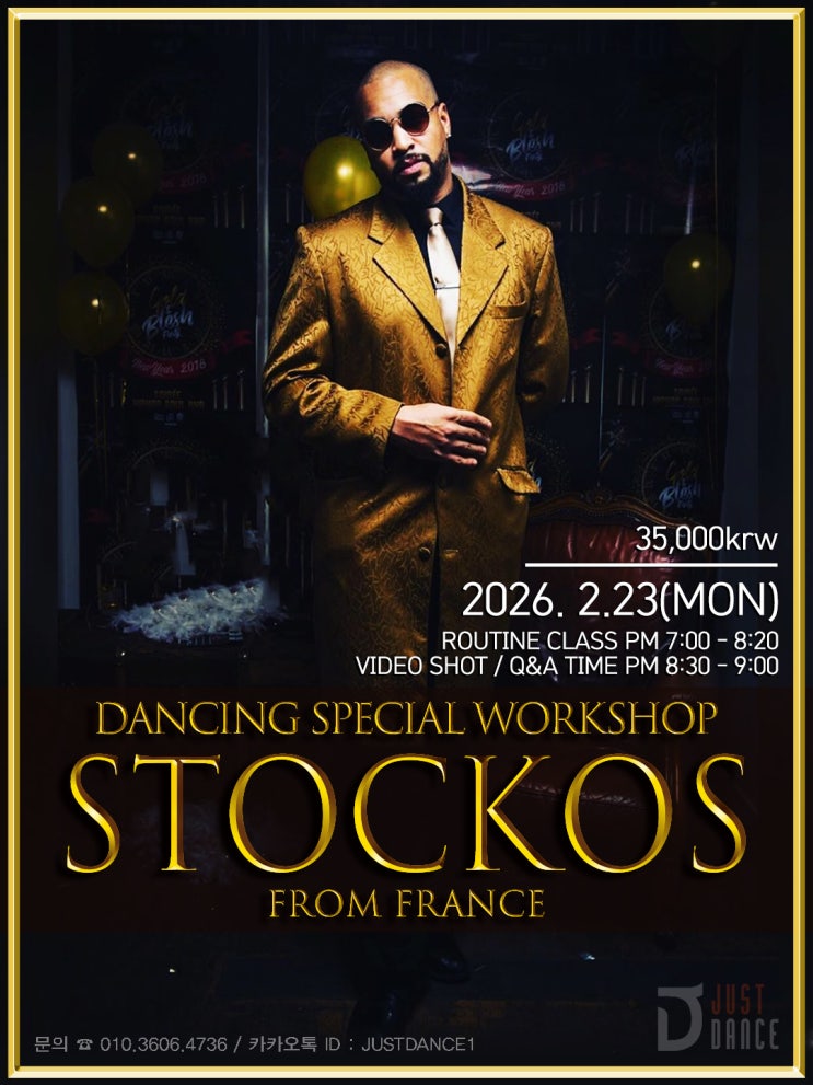 JUST DANCE 16TH 콘서트 SPECIAL WORKSHOP STOCKOS (From FRANCE) DANCING SPECIAL WORKSHOP 중국 베이징에서 수업, 공연, 심사 등 다양한 활동을 오랫동안 이어온 프로 댄서 STOCKOS와 함께하는 특별한 시간입니다. 오랜 티칭 경험을 바탕으로 많은 영감을 드릴 수 있을 것이라 확신합니다. 인스타그램 ID: @sstockos --------------------------- [ 수업 정보 ] 날짜: 2월 23일(월) 시간: 오후 7:00 ~ 오후 9:00 장소: JUST DANCE 댄스학원(동래점) [ 수업 내용 ] 수업 주제: 음악 & 움직임 수업 진행: 짧은 루틴 + Q&A [ 신청 방법 ] (정원 25명) 문자: 010-3606-4736 (DoitK) 카톡: JUSTDANCE1 - 보내실 내용: 제목: [STOCKOS 워....... <img src="https://blogthumb.pstatic.net/MjAyNjAxMjlfMjM2/MDAxNzY5NjQ5MzAxODc2.FYMXds2XlgaONdG9kay6vKXvkkKOKyJrc-CEDm35M7wg.N7fyQYkh1HoxNFS0d-oMke9W-ZhX7OJEewTpti87uUwg.JPEG/KakaoTalk_20260129_094121661.jpg?type=s3" />
