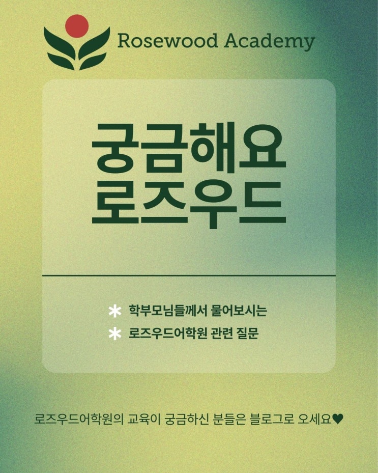 새 학기나 학원을 옮길 시기가 되면 학부모님들의 고민은 깊어집니다. "대형 어학원을 보내자니 전기세만 내다 올 것 같고, 작은 곳을 보내자니 커리큘럼이 부족해 보이고... 이런 고민의 정답이 되어드리기 위해, 결과로 증명하는 로즈우드어학원이 상담 시 가장 많이 받는 질문들을 모아 정리했습니다. Q1. "대형 어학원과 로즈우드, 교육 과정의 차이가 무엇인가요?" - 한국인 원장 Hazel Tr. : 원어민 중심의 대형 어학원과 달리, 로즈우드는 중고등 입시 전문 경력의 원장인 제가 직접 초등 고학년부터 필요한 한국식 영문법까지 책임집니다. 단순히 '말만 잘하는 영어'를 넘어, 스스로 생각하고 논리적으로 쓰는....... <img src="https://blogthumb.pstatic.net/MjAyNjAxMjVfMjI3/MDAxNzY5MzIxOTYwMDg0.ezHfmVC7TZEYvcVL3TKKK_u_OY154cNLS26FIedQJHkg.nT0N2KDCM8GhdTXWKC-BA-qbW0Pa1dqcQCYvcCvoRsQg.JPEG/%B1%C3%B1%DD%C7%D8%BF%E4.jpg?type=s3" />