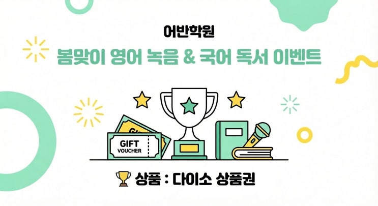 벚꽃이 피고, 새 학기의 설렘이 조금씩 일상이 되어가는 4월이 왔습니다. 봄을 타는지 요즘 수업하면서 아이들을 보면 괜히 마음이 뭉클하고 안쓰러울 때가 있습니다. 매일 녹음 숙제를 빠짐없이 올리는 친구, 리딩오션으로 책을 한 권 한 권 꾸준히 읽어가는 친구들... 저의 초등학교 시절을 돌아보면 공부한 기억보다 친구들과 뛰어놀았던 기억뿐이데 말이죠. 누가 시키지 않아도 스스로 해내는 그 모습이 원장으로서 정말 대견하고 고맙습니다. 그래서 이번 4월, 그 노력을 꼭 응원해 주고 싶습니다. ① 영어 녹음 숙제 완수 챌린지 4월 한 달 동안 영어 녹음 숙제를 하나도 빠짐없이 모두 완료한 친구 전원에게 다이소 상품권을 드려요! 딱 한....... <img src="https://blogthumb.pstatic.net/MjAyNjAzMjdfMjY3/MDAxNzc0NTY3ODA2MDU1.s5wLUdil8rxyjXiuB-oBeoEZC5DNhwxnqAgufzgJLBUg.QY7U4sSe0xtVa0nQ7MeCoNYibPIMNmDAetNb7lWRL1Eg.JPEG/%EB%B4%84%EB%A7%9E%3F%9D%B4_%3F%9D%B4%EB%B2%A4%ED%8A%B8.jpg?type=s3" />
