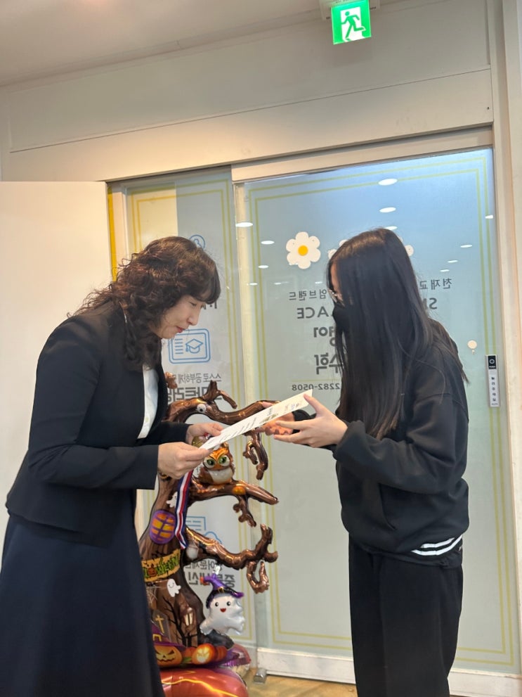 안녕하세요. 숭신해법학원입니다. 우리 아이들의 영어 실력 향상을 위해 지난 10월 월말 평가로 진행되었던 ENGLISH STORYTELLING 월말 평가가 모두 마무리되어 어제 시상식을 가졌습니다. 이번 평가는 자신감 있는 영어 말하기 능력 향상을 목표로, 아이들이 교재 속 스토리를 외워 발표하는 방식으로 진행되었습니다. 열심히 공부하고 준비한 우리 아이들 모두에게 뜨거운 칭찬의 박수를 보냅니다! 자랑스러운 우수 학생 발표 모든 학생들이 뛰어난 실력을 보여주었지만, 특히 빛나는 노력을 통해 우수한 평가를 받은 학생들을 아래와 같이 발표합니다! * 대상 (1명): 치킨 쿠폰 수여 * 최우수상 (2명): 1만원 GS편의점 상품권 수....... <img src="https://blogthumb.pstatic.net/MjAyNTExMjFfNTkg/MDAxNzYzNjkyMzg5OTkz.B-U-InxazZwMFY_Ky4zSMS9jV8citeT1ieHvFHbTdg8g.q7XdDOUJOi8f4C30-s78CSgjQnGKMH81uZ30CX8ZeJAg.JPEG/900%A3%DF1763691370684.jpg?type=s3" />