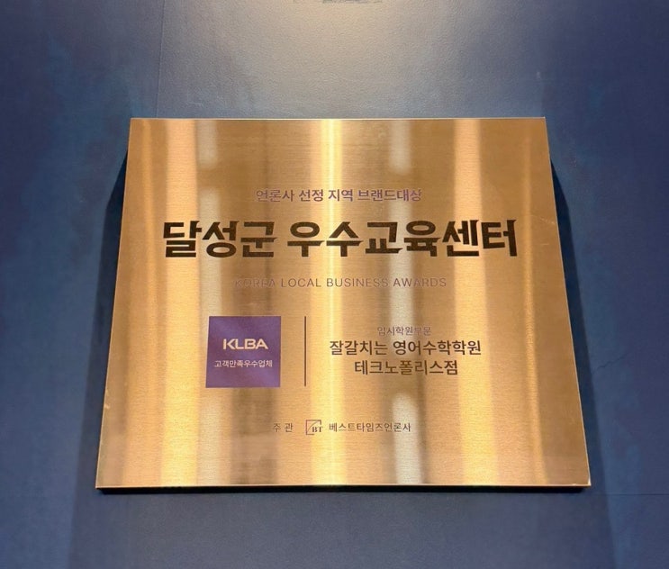존경하는 학부모님, 안녕하세요. 2025년에 이어 2026년도 벌써 3월 새학년 신학기가 시작되었습니다. 곧 우리 아이들이 한 단계 더 성장하는 새 학년의 새로운 다짐과 목표을 계획하기에 가장 좋은 시점입니다. 모두가 올해 목표 달성하는 26년 한해가 되길 바랍니다. 지난 2025년 한 해 동안의 여러 교육 평가를 통해 저희 학원이 달성군 입시학원 부문 ‘우수교육센터 대상’을 수상하게 되었습니다. 사실 이 상은 학원이 잘해서라기보다, 학원을 믿고 아이들을 맡겨주신 학부모님들의 신뢰, 묵묵히 따라와 준 우리 아이들의 노력, 그리고 아이 한 명 한 명의 가능성을 끝까지 붙잡아 준 선생님들의 헌신이 만들어낸 결과라고 생각합니다. 아이....... <img src="https://blogthumb.pstatic.net/MjAyNjAzMDlfNTUg/MDAxNzczMDM0NDUwODYy.Ny0PKMR9aZ2XEkBKaeiDHW_54Mz1G8hLEV_ibLQFoBUg.rVnM6uQ5JeKqlpN_yGpcK0GoQvBdOADme_A3yx_72QAg.JPEG/output%A3%DF1782596432.jpg?type=s3" />