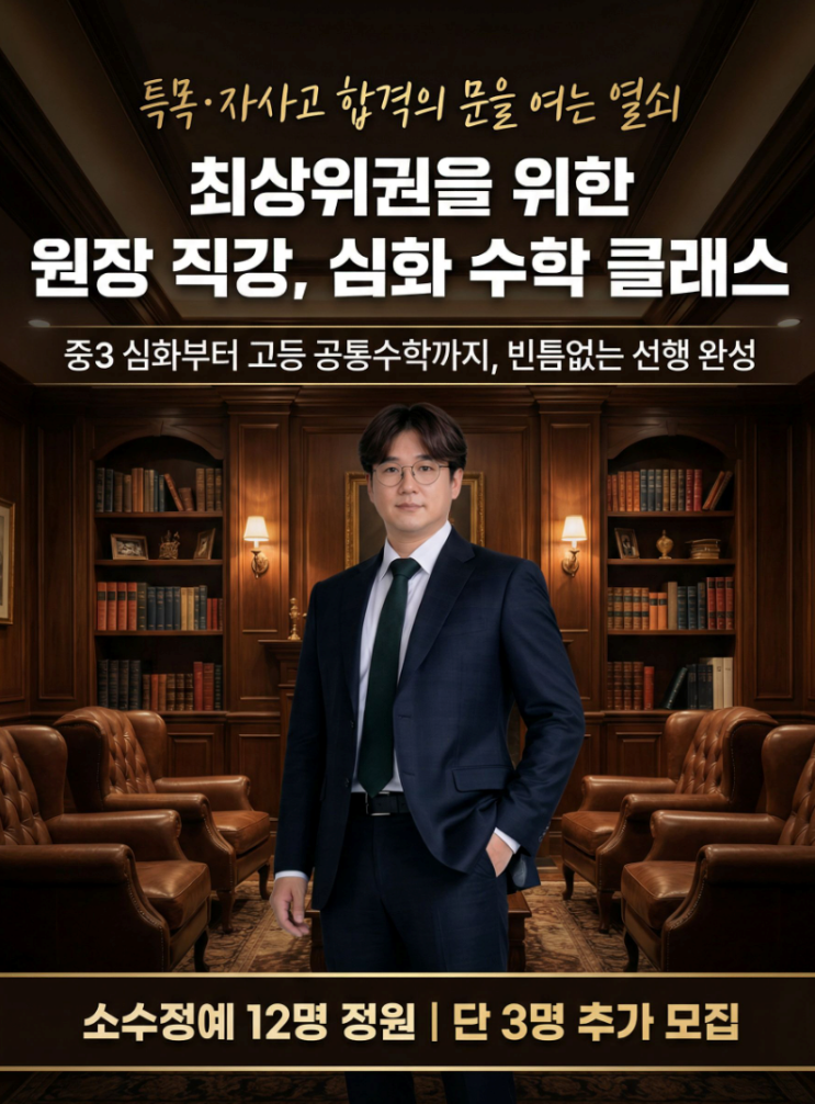 [중3 특목고, 자사고 대비 수학반 모집] 공항중, 영종중, 운서중, 하늘중 중2 특목·자사고 대비 심화 수학반 (마감 임박) 중3 과정 심화 + 고등 공통수학1·2 선행 상위권 전용 커리큘럼 운영 ✔️ 중3-1 심화 ✔️ 공통수학1 (마플교과서) ✔️ 공통수학2 선행 예정 ✔️ 원장 직강 수업 [1년 수업 커리큘럼] *3-1학기 (정규수업) : 3-1심화수학 + 공통수학1 + 공통수학2 *여름방학 (정규수업) : 공통수학1 심화 + 공통수학2 심화 *여름방학 (특강수업) : 대수 + 미적분 *3-2학기 (정규수업) : 3-2심화수학 + 대수 + 미적분 *겨울방학 (정규수업) : 공통수학1,2 심화 총정리 + 대수,미적분 심화 총정리 *겨울방학 (특강수업) : 선택- 미적분....... <img src="https://blogthumb.pstatic.net/MjAyNjAzMDNfMTA2/MDAxNzcyNTQ5NDcwODg0.a8KxATu4U65CDYEtrHY8l9GM5SezrfBPTnH6qC_fjCEg.svUsWcVSLdAWWseptnIoOrd-oM-1lRw2Og1PTpoqJLUg.PNG/%C1%A6%B8%F1%C0%BB_%C0%D4%B7%C2%C7%D8%C1%D6%BC%BC%BF%E4._%288%29.png?type=s3" />
