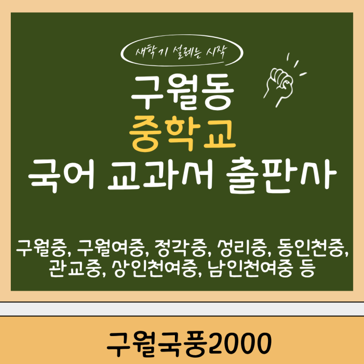 구월동 중학교 국어 교과서 총정리! (구월중, 구월여중, 정각중, 동인천중, 관교중, 성리중, 상인천여중 등) 새 학기가 시작되면 학부모님들께서 가장 궁금해하시는 것 중 하나가 바로 "우리 아이 학교는 어떤 교과서를 쓰나요?"입니다. 중등 국어는 초등 국어와 달리 학교별 출판사에 따라 지문의 종류와 문제 출제 경향이 완전히 달라지기 때문에, 출판사를 정확히 알고 대비하는 것이 내신 1등급의 첫걸음입니다. 오늘은 구월동 인근 주요 중학교의 국어 교과서 현황을 정리해 드립니다! 구월동 인근 중학교 국어 교과서 현황 교과서만 알면 성적이 오를까요? 출판사를 아는 것은 지도를 가진 것과 같습니다. 하지만 그 길을 제대로....... <img src="https://blogthumb.pstatic.net/MjAyNjAyMjZfMTMw/MDAxNzcyMDg5NjAyMjA0.TAXkXZ7sSvr0gEMH8m2R2qJc6TvZ6nUBWzi7eAoRfkQg.8Y4WeC4uIjyfhYN96Iv_XOihgKTt5_SQyGJx21fDF2Qg.PNG/%C1%A6%B8%F1%C0%BB_%C0%D4%B7%C2%C7%D8%C1%D6%BC%BC%BF%E4._%2827%29.png?type=s3" />