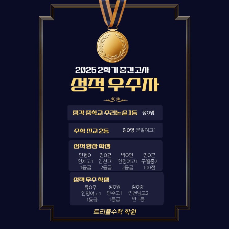 트리플수학 2025 년 2학기 중간고사 성적 발표~
