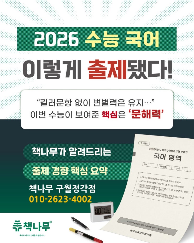 안녕하세요. 이번 2026년 수능 국어 실제 출제 경향 및 문항별 핵심 포인트를 알아 보고자 합니다^^ "킬러문항 없이 변별력은 유지..." 이번 수능이 보여준 핵심은 '문해력' 2026학년도 수능국어는 전반적으로 '문해력 기반 사고력'을 평가하는 방향이 더욱 강화되었습니다. 킬러 문항은 배제되었지만, 정보 간 관계, 조건 비교, 개념의 구조적 이해를 요구하는 문항들이 늘면서 실질 난이도는 작년보다 다소 어려움으로 분석되었습니다. 전체 경항 및 난이도 ✔️ 전반적으로 2025 수능 및 9월 모평과 유사한 출제 방식 ✔️ 킬러문항 배제, 지문 내 '명시적 근거' 기반 문항 출제 ✔️ 추론은 최....... <img src="https://blogthumb.pstatic.net/MjAyNTExMjBfMjA0/MDAxNzYzNjExMjIyMzQ1.vpnaRJNFQ27W9Odz4OplMxsijgKqs8UMeAdXRjntrLYg.RKADsBIJOF0WoMqsZqEr--9UHKhdyxNjc5b0hkUgqcAg.JPEG/%BD%BD%B6%F3%C0%CC%B5%E51.JPG?type=s3" />