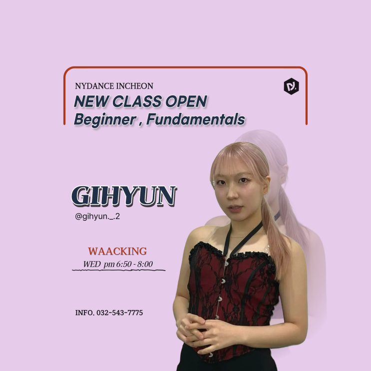 WAACKING BASIC CLASS OPEN 강렬한 표현력과 디테일한 기본기. 왁킹의 매력을 제대로 배울 수 있는 수업이 오픈되었습니다. GIHYUN 강사님과 함께하는 WAACKING Beginner / Fundamentals Class ✔ 매주 수요일 PM 6:50 - 8:00 엔와이댄스 인천점에서 왁킹의 기본부터 탄탄하게 시작해보세요. 많은 관심 부탁드립니다! 상담 및 자세한 설명이 필요하시다면 방문 상담 & 전화 032-543-7775 로 문의 부탁드리겠습니다 감사합니다:) <img src="https://blogthumb.pstatic.net/MjAyNjAyMjdfMjIw/MDAxNzcyMTg3OTkwODAw.YLNjcfu9ypI3vPn0oyWtdKI0m3c37t2M0mduFxJu2Xsg.VjJgUsbOC9ARRlFzxzOJck69hliN30bDEOwbmoFYkr4g.PNG/image.png?type=s3" />