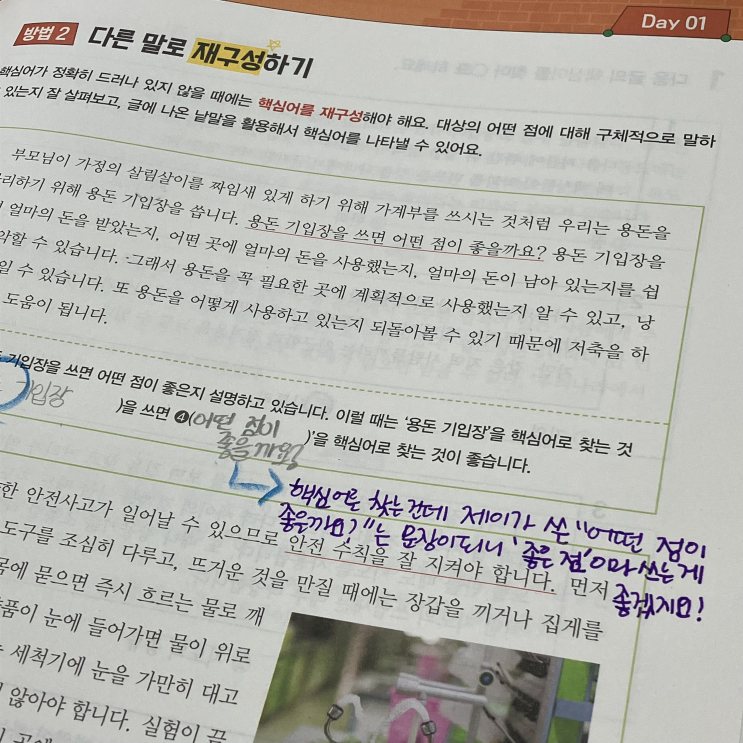 안녕하세요! 인천 #원당동논술학원 스피치학원 스피치 김포아라입니다. 오늘 수업에서 한 친구가 문제를 많이 틀렸어요. 하지만 저는 전혀 걱정하지 않았습니다. 왜냐하면 틀린 문제는 ‘실력의 증거’가 아니라 ‘생각이 시작된 흔적’이기 때문입니다. 사진을 보시면 아시겠지만 핵심어 찾기, 다른 말로 재구성하기, 공통점과 차이점 정리하기, 설명문 구조 파악하기… 이건 단순 문제풀이가 아니라 글을 구조적으로 읽는 훈련입니다 . 아이들이 가장 많이 틀리는 부분은 지식이 부족해서가 아니라 ✔ 핵심을 한 문장으로 정리하지 못해서 ✔ 글의 중심을 “명사형”으로 묶지 못해서 ✔ 설명하는 문장을 핵심어로 압축하지 못해서 입니다. 그....... <img src="https://blogthumb.pstatic.net/MjAyNjAyMTJfMTE4/MDAxNzcwODg1OTQ1MjE1.G41SWbwVnuQMb2-At6n8n2YVNgzFyyiUu1JLTr-r7rwg.vXN4n4g3Rqp8KpwIMmLygRKUHjhanDxf9dIoLncJJ3Eg.PNG/image.png?type=s3" />