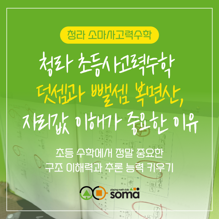 [청라 소마사고력수학] 초등수학 복면산이란? 자리값·받아올림 원리까지 잡는 수학훈련