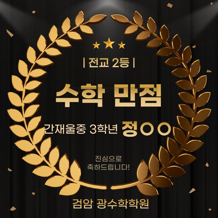 [검암 광수학 학원] 간재울중3 전교2등 수학100점 축하드립니다!! ☆