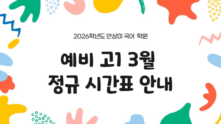 [장안동 국어 학원 안상미 국어 학원] 예비 고1 3월 정규 시간표(경희고, 동대부고, 청량고, 휘경여고)