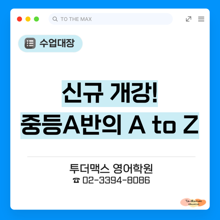 [ttmx] 투더맥스영어학원 : [떵티] 신규 개강한 중등A반, A부터 Z까지 소개해드립니다!