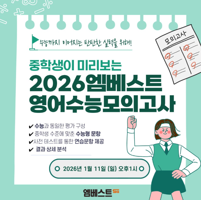 [장안동 영어학원] 중학생이 미리보는 2026 엠베스트 영어 수능 모의고사 (1월 11일 실시) / 장안동 엠베스트SE 공부습관8640