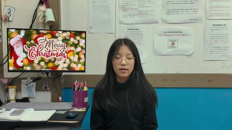 Annie가 크리스마스 주제로 발표했습니다. 발표 내용을 잘 정리해서 이해하기 쉬웠고 자신있는 모습에 듣기도 좋았습니다. 또한 자연스럽고 내용 구성이 좋은데요~ 12월은 크리스마스 데이가 있어 더욱 행복한데요~ 이번 크리스마스트는 스프라이팅학원에서 성대한 파티가 열릴 에정이라 더 기대가 됩니다. 항상 긍정적으로 수업을 받고 있는 Annie의 성장 또한 더욱 기대가 됩니다 :) #스프라이팅학원 #이문동영어학원 #이문초 #석계초 #석관초 #경희중 #경희여중 #쌍용아파트 #초중영어 #중등내신 #백점학원 #즐거운영어학원 #원어민선생님 #소수정예 #영역별수업 #중등평균점수94점 #내신잘하는학원 <img src="https://phinf.pstatic.net/image.nmv/blog_2025_12_05_3399/XymRSjxXo8_01.jpg?type=f480x480" />