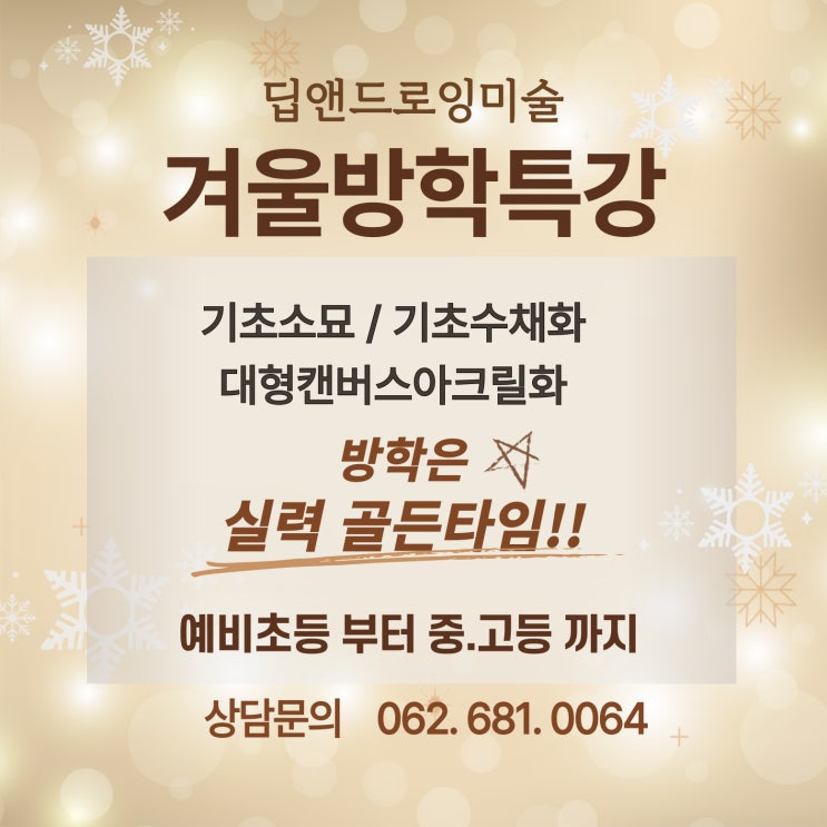 금호동 미술학원, 만호초, 화개초, 딥앤드로잉 겨울방학 특강 "방학은 실력이 달라지는 골든타임!!"